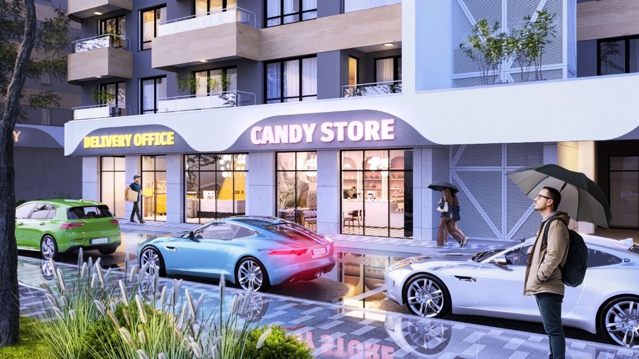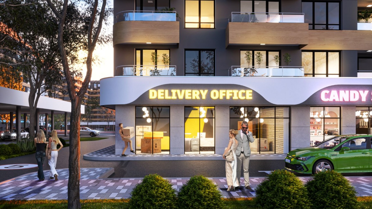 облегчения повседневной жизни: отделение банка, химчистка, курьерская служба, магазины промышленных товаров, пиццерия, пекарня, а также кабинеты врачей общей практики.