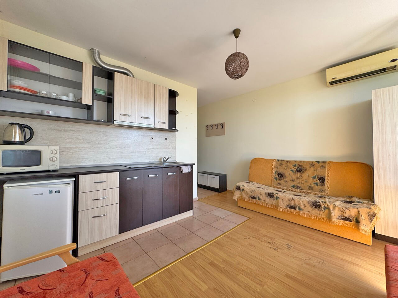 Кухня-студия, санузел, балкон.